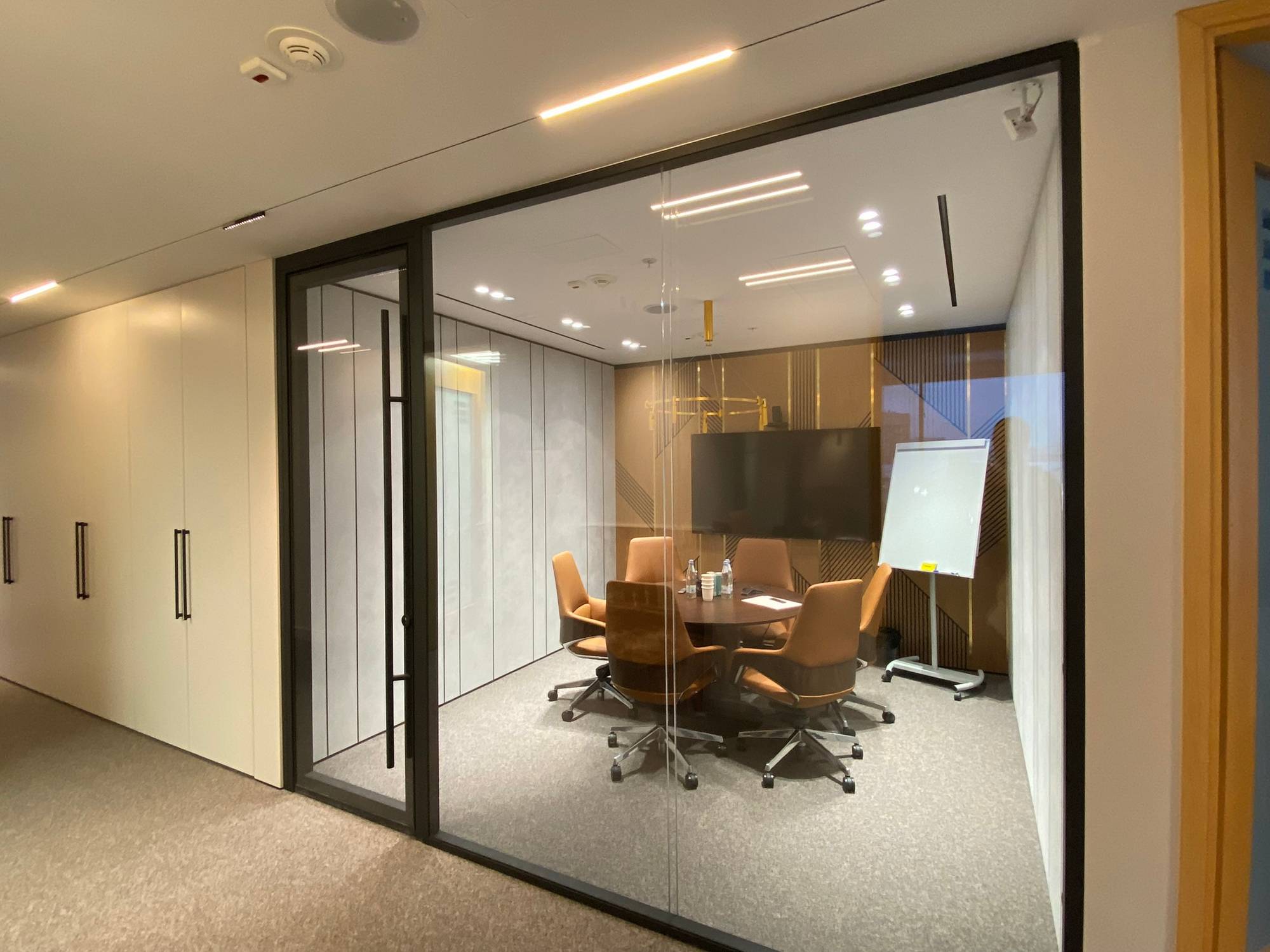 Перегородки TWIN представляют собой современное решение для зонирования пространства с использованием двойного остекления. Они изготавливаются из цельного закаленного стекла толщиной 10 мм и алюминиевого профиля.