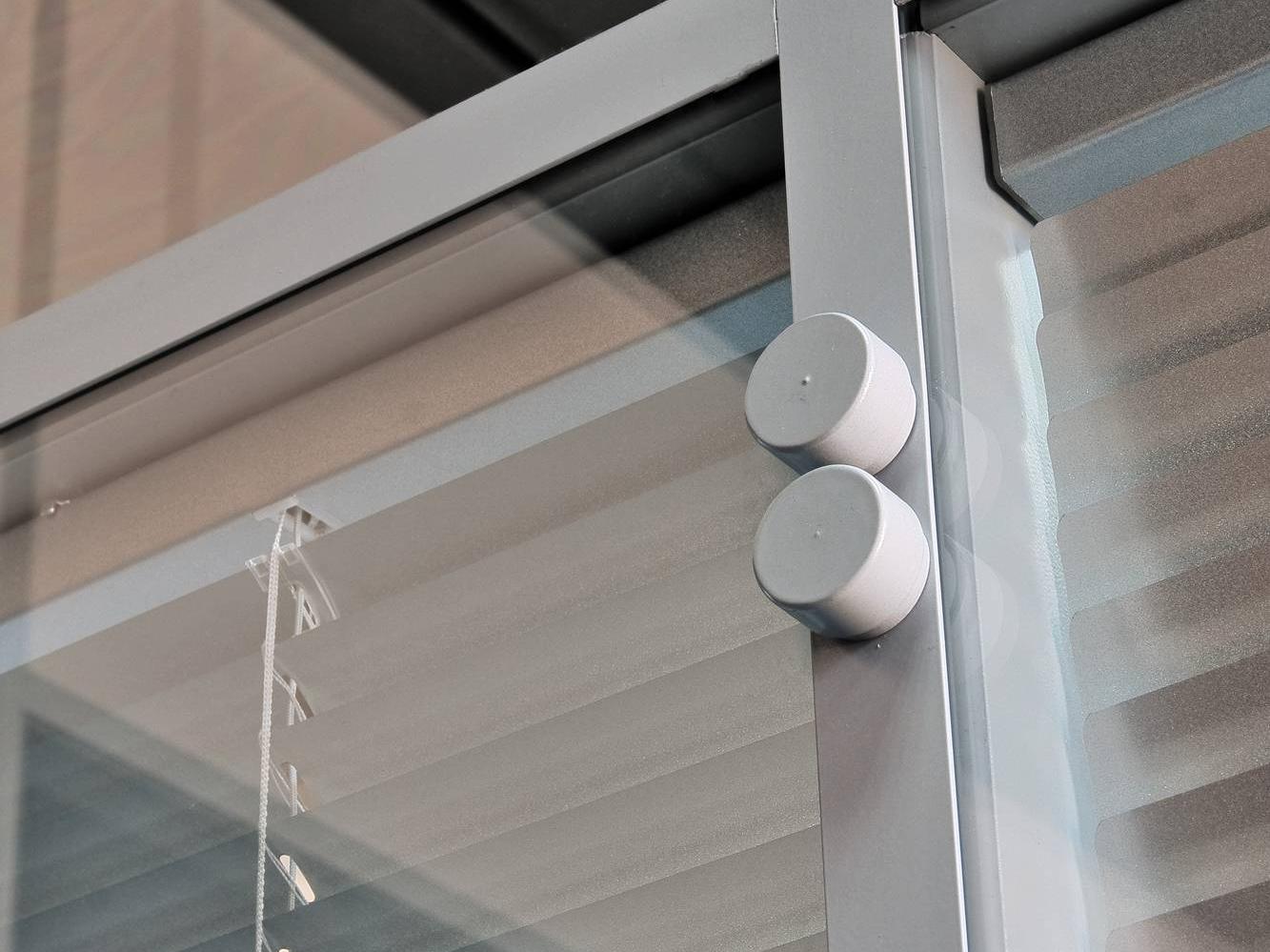 Комплексное решение для офисных перегородок включает в себя продуманную до мелочей систему управления. Эргономичная круглая ручка служит центром управления всей конструкцией. При её вращении ламели перемещаются плавно и бесшумно, создавая оптимальные условия для работы.